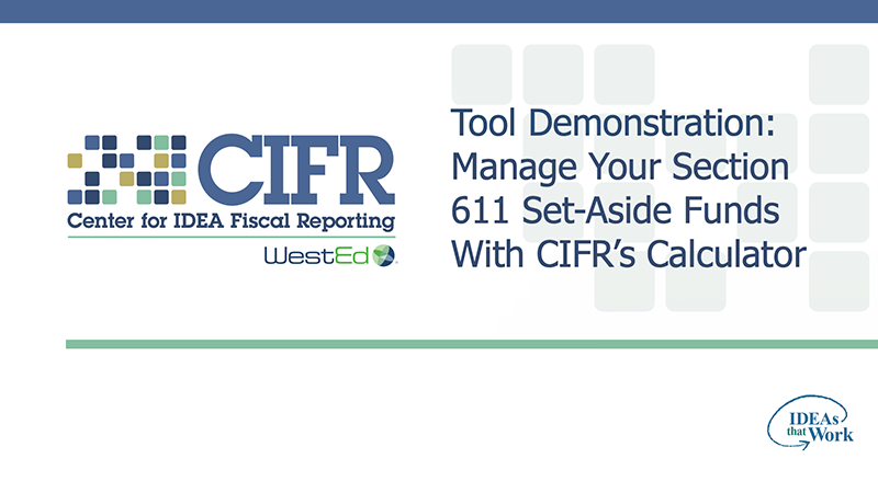Developed by CIFR, this calculator enables state educational agency (SEA) finance staff to collect and report data on Part B Section 611 state set-aside funds.